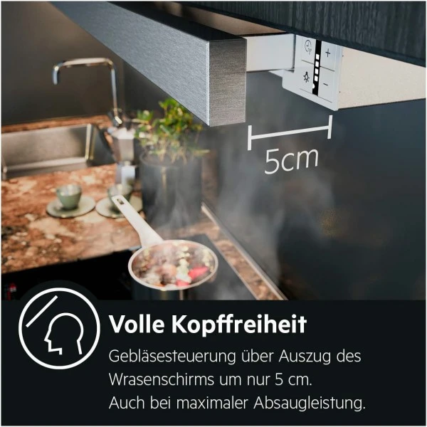 Diese Dunstabzugshaube saugt Küchendünste schnell ab. Der Grund ist der effiziente und kraftvolle Motor der fortschrittlichen Dunstabzugshaube.