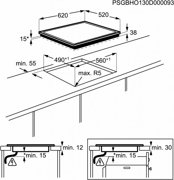 Das Glaskeramikkochfeld hat ein Gewicht von 7,2 kg und ist 62 cm breit, 3,8 cm hoch und 52 cm tief.