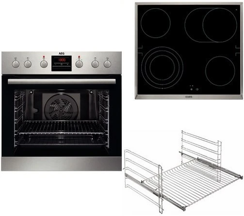 Mit dem HF23M40S3R bietet AEG Ihnen ein Einbau-Geräte-Set. Ausgestattet mit der Energieeffizienzklasse A+ verbraucht das sparsame Einbau-Geräte-Set lediglich 0,69 kWh bei Heißluft/Umluft sowie 0,93 kWh bei Ober-/Unterhitze und hält die Kosten somit gering. Außerdem wird über die Restwärmeausnutzung der Verbrauch minimiert. Back- und Kochvergnügen im großen Stil verspricht das HF23M40S3R mit seinem überdurchschnittlich großen Innenraumvolumen von 72 Litern. Auf 4 Kochzonen bietet das Einbau-Geräte-Set Platz für Pfannen und Töpfe. Die Restwärmeanzeige erinnert daran, nicht auf die noch heiße Fläche zu fassen.