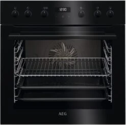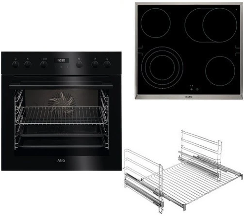 Mit dem HF64B50S3R bietet AEG Ihnen ein Einbau-Geräte-Set, welches aus einem Einbauherd und einem Glaskeramikfeld besteht. Der niedrige Verbrauch von gerade mal 0,69 kWh bei Heißluft/Umluft und 0,99 kWh bei Ober-/Unterhitze sowie die Energieeffizienzklasse A+ zeichnen das Einbau-Geräte-Set als besonders sparsam aus. Das Innenraumvolumen ist auf 71 Liter ausgelegt und damit mittelgroß. Das Einbau-Geräte-Set verfügt über 4 Kochzonen. Dank der Restwärmeanzeige wissen Sie ganz genau, ob die Kochfläche noch heiß ist.
