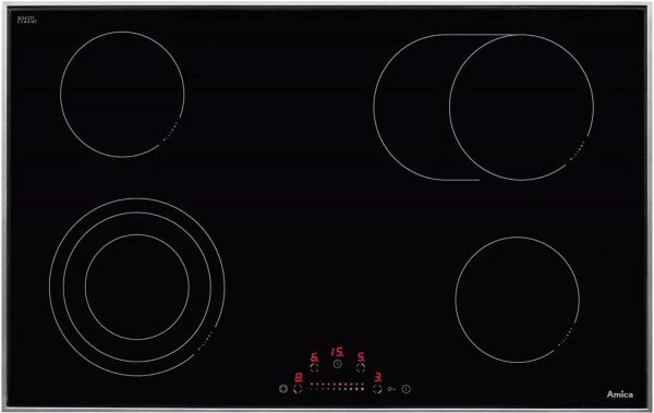 Das KMC 743 600 E ist ein Glaskeramikkochfeld von Amica. Das Glaskeramikkochfeld besitzt 4 Kochzonen. Größer an Fläche und damit ideal für Bräter und Co. ist die Bräterzone. Die Restwärmeanzeige erinnert daran, nicht auf die noch heiße Fläche zu fassen.