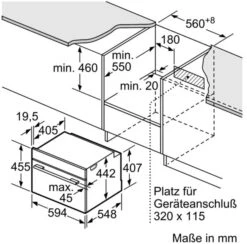 - „Maße und Einbauhinweise zu diesem Gerät gemäß technischer Zeichnung beachten“
