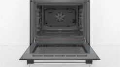 Der Backofen fasst 66 Liter und ist damit mittelgroß. Aufgrund der katalytisch beschichteten Rückwand sparen Sie Aufwand und Zeit bei der Reinigung. Eine Größe von 59,4 cm x 54,8 cm x 59,5 cm sowie 32,527 kg Gewicht werden für den Elektrobackofen angegeben. Hinsichtlich der Energieeffizienz wurde der HBF133GR0 in Klasse A eingestuft. Er hat einen Verbrauch von 0,79 kWh bei Heißluft/Umluft und 0,98 kWh bei Ober-/Unterhitze. Ergänzt wird der Lieferumfang des HBF133GR0 durch 1 Kombi Back-/Grillrost und 1 Universalpfanne.