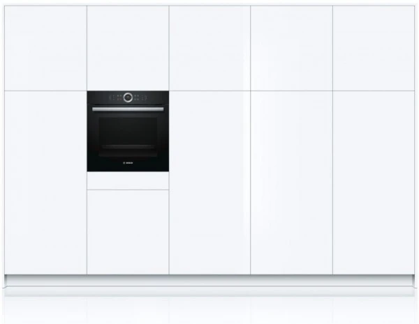 Das Backrohrvolumen ist auf 71 Liter ausgelegt und damit mittelgroß. Der Einbau-Backofen wird mit einer Einknopfbedienung bedient. Zeitfunktionen wie die Startzeitvorwahl und die Zeitschaltautomatik sind von Vorteil, wenn bereits alles vorbereitet ist, das Gericht aber erst später erhitzt werden soll. Für mehr Sicherheit im Alltag sorgt die kühle Backofentür. Brand- oder Verbrennungsgefahren werden dadurch minimiert. Als Putzhilfe in Form von Hitze unterstützt Sie die pyrolytische Selbstreinigungsfunktion. Aufgrund der glatten Innenwand sparen Sie darüber hinaus Zeit und Aufwand bei der Reinigung. Der Elektrobackofen misst 59,5 cm x 54,8 cm x 59,5 cm und wiegt 38 kg. Der Lieferumfang des HBG675BB1 enthält 1 Backblech, 1 Kombi Back-/Grillrost und 1 Universalpfanne.