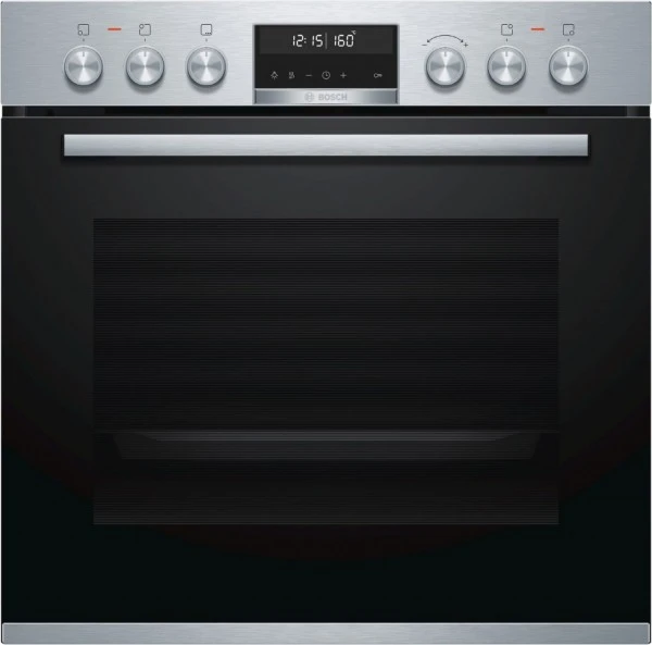 Bosch präsentiert mit dem HND671CS60 ein Einbau-Geräte-Set mit einem Einbauherd und einem Glaskeramikfeld. Das Backrohrvolumen ist auf 71 Liter ausgelegt und damit mittelgroß. Auf 4 Kochzonen bietet das Einbau-Geräte-Set Platz für Töpfe und Pfannen. Die Restwärmeanzeige erinnert daran, nicht die noch heiße Kochzone zu berühren. Ihre Kochkreationen glücken mit den 30 Automatikprogrammen garantiert, denn das HND671CS60 stimmt Einstellungen und Zeit auf das jeweilige Gericht ab.