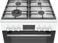 Mit dem HXR39AI20 bietet Bosch Ihnen einen Gas-Elektro-Herd. Der Backofen fasst 66 Liter und ist somit mittelgroß.