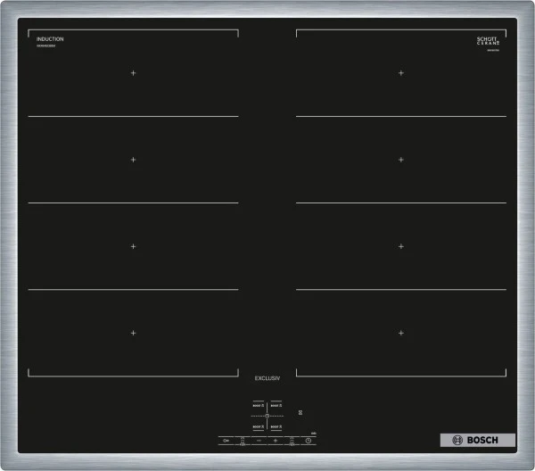 - 2 FlexInduktions-Zonen: Verwenden Sie Kochgeschirr beliebiger Form und Größe innerhalb der 40 cm langen Zone.