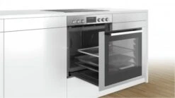 - Dieses Kochfeld ist nur in Kombination mit einem geeigneten Einbauherd (HE) zu betreiben: Steuern Sie die Leistung mit den Knebeln am Herd und Sie sehen die eingestellte Leistungsstufen auf dem Kochfeld.