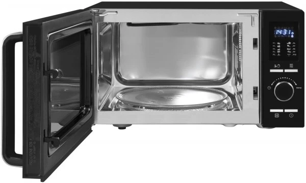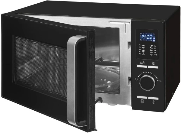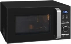 Das MW 8925-7 H ist ein Kombi-Mikrowellengerät von Exquisit. Das Mikrowellengerät besitzt einen 25 Liter Garraum und bietet daher auch für Pizzen oder Kuchen problemlos Platz. Bei einer Maximalleistung von 900 Watt werden Ihre Mahlzeiten im Handumdrehen erhitzt. Dazu sind 11 Leistungsstufen vorhanden. Auf bis zu 95 Minuten können Sie die Laufzeit einstellen. Das MW 8925-7 H steht Ihnen mit den 9 Automatikprogrammen zur Seite.