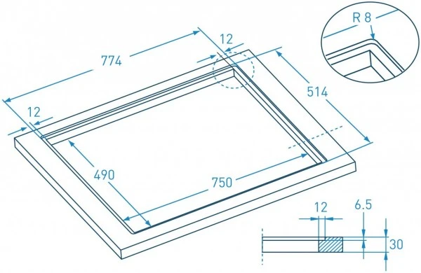 Das Gerät wird mit Sensortasten bedient. Eine Größe von 77,4 cm x 51,4 cm x 5,5 cm sowie 11,1 kg Gewicht werden für das Induktionskochfeld angegeben.