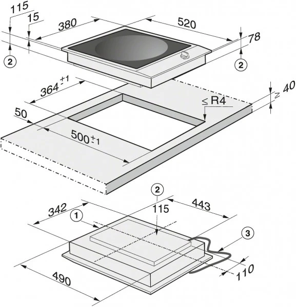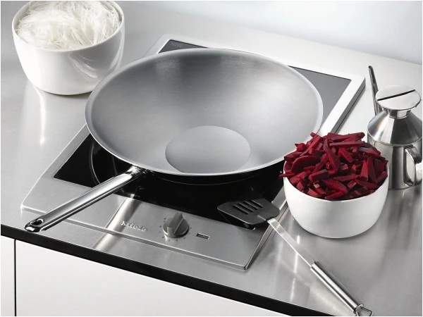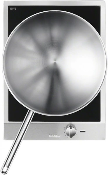 Das Gerät wird mit einem Drehregler bedient. Geliefert wird das CS 1223-1 I mit 1 Glasschaber und 1 Wok-Pfanne.