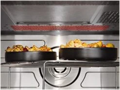 Das Mikrowellengerät hat ein Gewicht von 16,5 kg und ist 52 cm breit, 30,5 cm hoch und 42,2 cm tief. Die Tür des Geräts öffnet sich nach links. Damit Sie die Zeit nicht vergessen, wurde ein Timer eingebaut. Für mehr Sicherheit im Alltag sorgt die Abschaltautomatik. Geliefert wird das M 6012 SC mit 1 Grillrost und 1 Drehteller.