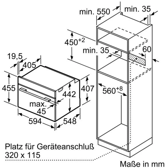 - Nischenmaße (HxBxT): 455 mm x 560 mm x 550 mm