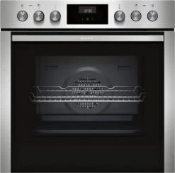 Mit dem HMK161P bietet NEFF Ihnen ein Einbau-Geräte-Set, welches aus einem Einbauherd und einem Glaskeramikfeld besteht. Der Backofen fasst 71 Liter und ist damit mittelgroß. Töpfe und Pfannen finden bei diesem Einbau-Geräte-Set auf 4 Kochzonen Platz. Dank der Restwärmeanzeige wissen Sie ganz genau, ob die Kochfläche noch heiß ist.