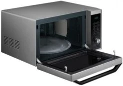 Samsung präsentiert mit dem MC32J7035DS ein Kombi-Mikrowellengerät. Wenn Sie keinen Backofen haben, nutzen Sie einfach das Mikrowellengerät mit einem Fassungsvermögen von 32 Litern. Mit bis zu 900 Watt und 6 Leistungsstufe ist Ihr Essen im Nu fertig. Auf bis zu 99 Minuten kann die Laufzeit eingestellt werden.