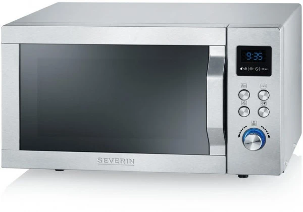 Severin präsentiert mit dem MW 7754 ein Kombi-Mikrowellengerät. Das Mikrowellengerät verfügt über einen 25 Liter Garraum aus Edelstahl und bietet daher auch für Pizzen oder Kuchen problemlos Platz. Bei einer maximalen Mikrowellenleistung von 900 Watt wird Ihr Essen im Handumdrehen erhitzt.