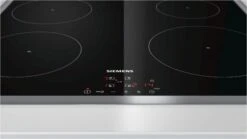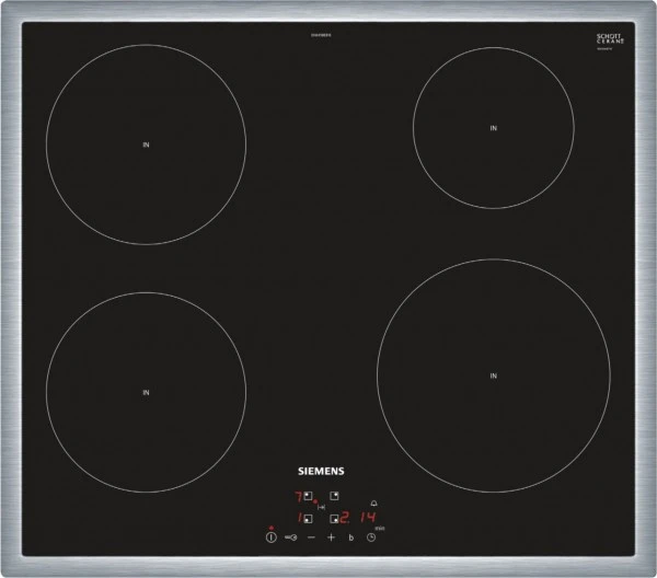 Das EH645BEB1E ist ein Induktionskochfeld von Siemens. Dank der Induktionstechnologie mit Topferkennungssensor besticht das Modell durch schnelle Hitzeerzeugung und ein extra Plus an Sicherheit, da nur die Töpfe aufgeheizt werden, die Glasplatte aber nicht. Töpfe und Pfannen finden bei diesem Induktionskochfeld auf 4 Kochzonen Platz. Zu besten Leistungen in Sachen Power und Schnelligkeit treibt die Turbostufe des EH645BEB1E. Dank der Restwärmeanzeige wissen Sie ganz genau, ob die Kochfläche noch heiß ist.