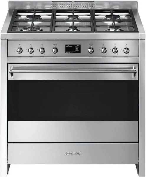 Smeg präsentiert mit dem A1D-9 einen Gas-Elektro-Herd. Ausgestattet mit der Energieeffizienzklasse A+ benötigt der sparsame Gas-Elektro-Herd lediglich 0,84 kWh bei Heißluft/Umluft sowie 1,45 kWh bei Ober-/Unterhitze und hält die Kosten auf diese Weise gering. Wenn Sie gerne Freunde zum Essen einladen und große Mengen auf einmal zubereiten möchten, kommen Sie bei dem A1D-9 mit einem extra großen Fassungsvermögen von 115 Litern voll auf Ihre Kosten.